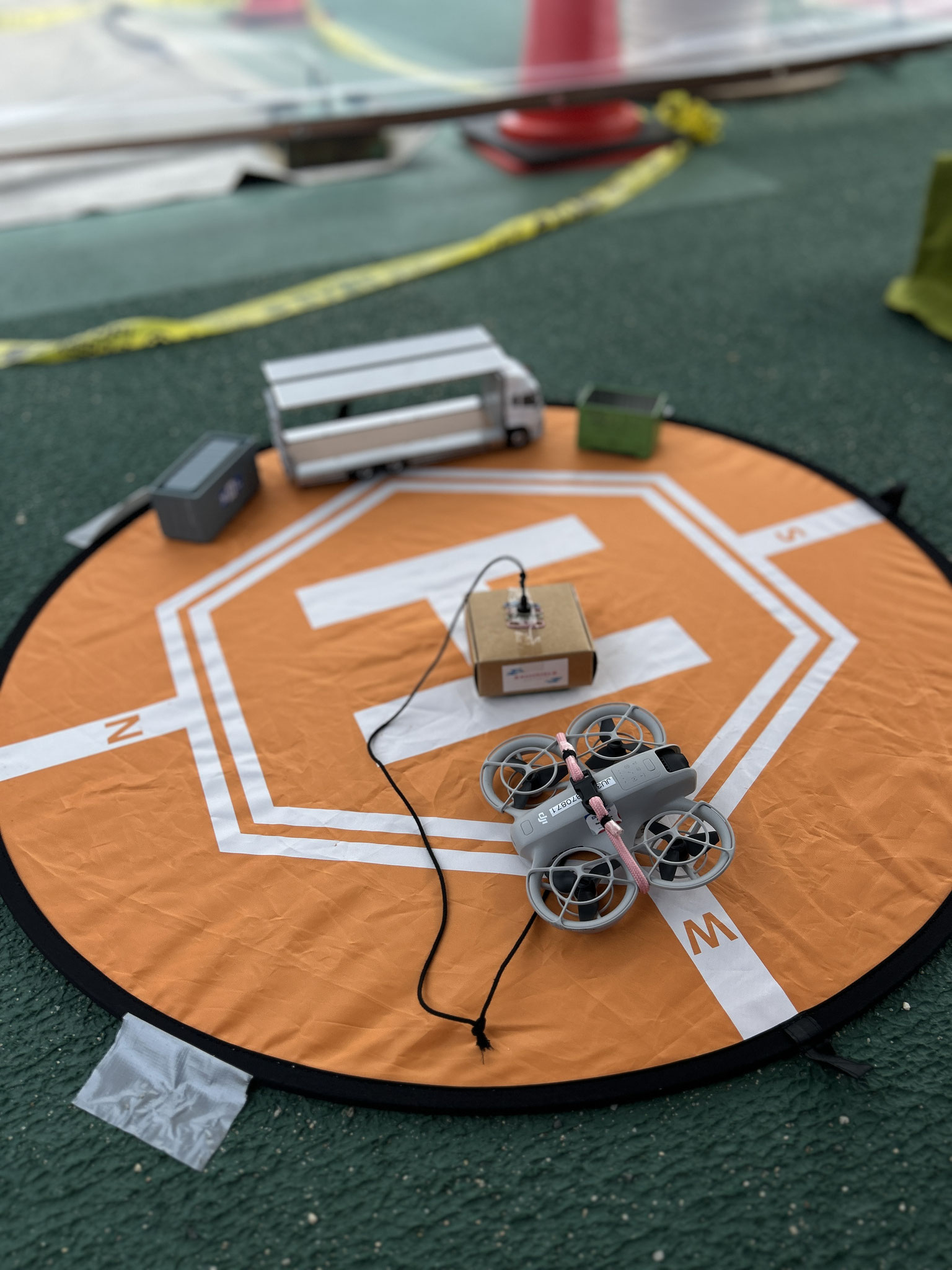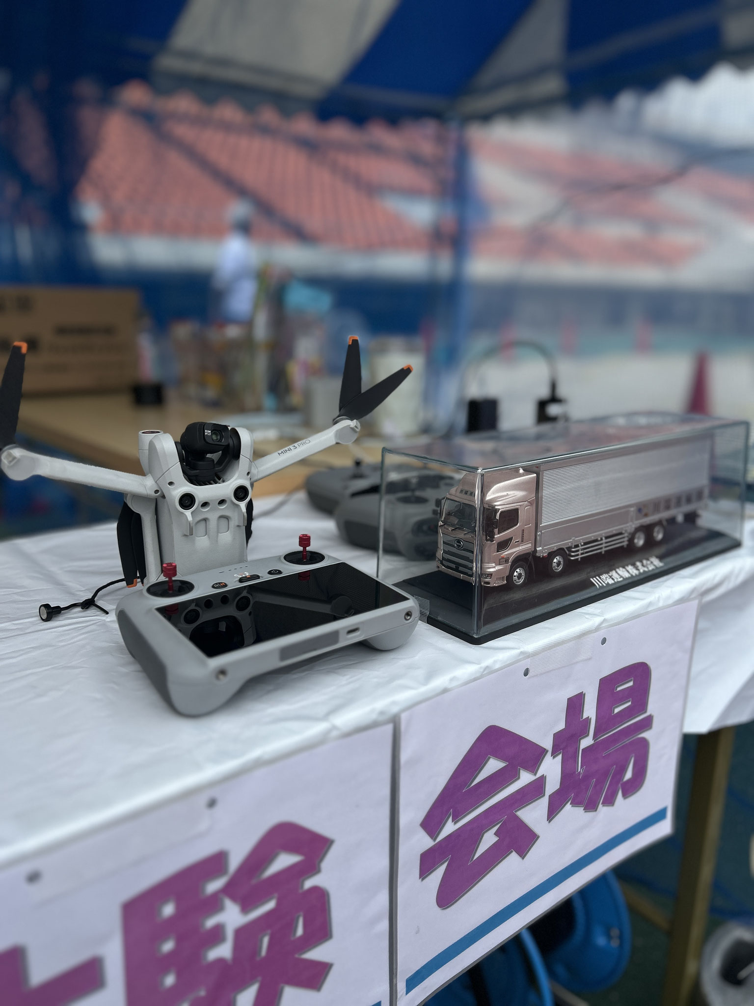 当日は、弊社のトラックを2台、会場で展示させて頂きました。また、来場されたお子様たちに楽しんでいただけるよう「小型ドローンの操縦体験」ブースを出展いたしました。 最初は慣れないドローンの操縦に苦戦するお子様もいらっしゃいましたが、うまく箱を運べた瞬間に満面の笑みが溢れました。