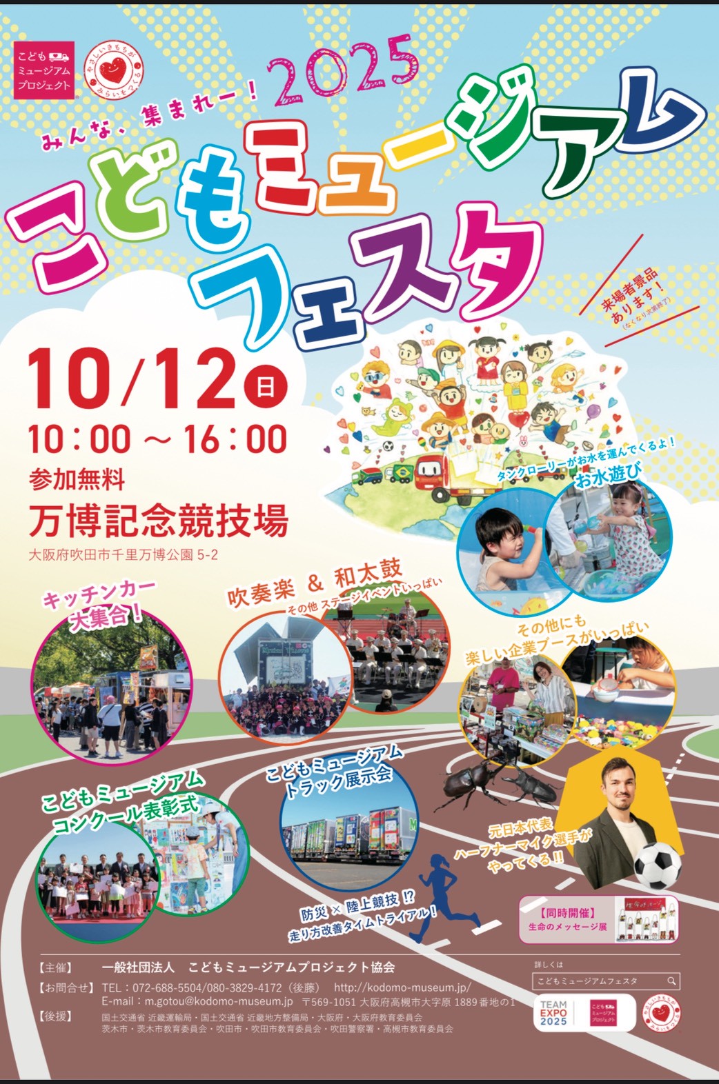 2025年10月12日(日)、万博記念競技場にて開催されました「2025こどもミュージアムフェスタ」(主催:一般社団法人こどもミュージアムプロジェクト協会)に参加しました。